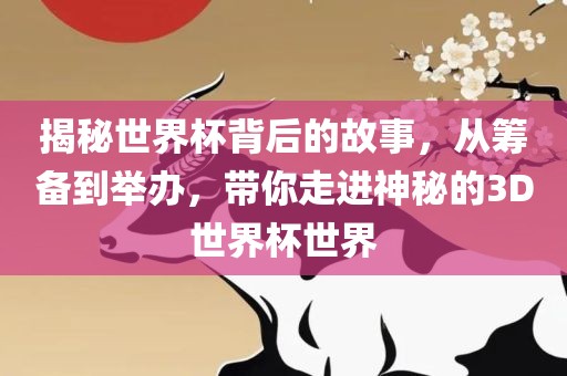 摘要:本文将带你揭开世界杯背后的神秘面纱,从筹备到举办的全过程一一呈现。深入了解世界杯的艰辛历程,走进神秘的3D世界杯世界。跟随我们的脚步,一起感受世界杯的独特魅力和激情四溢的氛围。