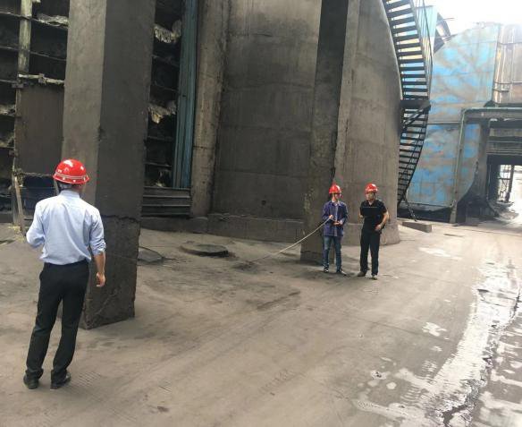東方鍋爐集團有限公司、攀鋼釩煉鐵廠(chǎng)和藍鼎環(huán)保工作人員在2#燒結脫硫系統現場(chǎng)勘查確認脫硝設備安放位置和現場(chǎng)場(chǎng)地尺寸
