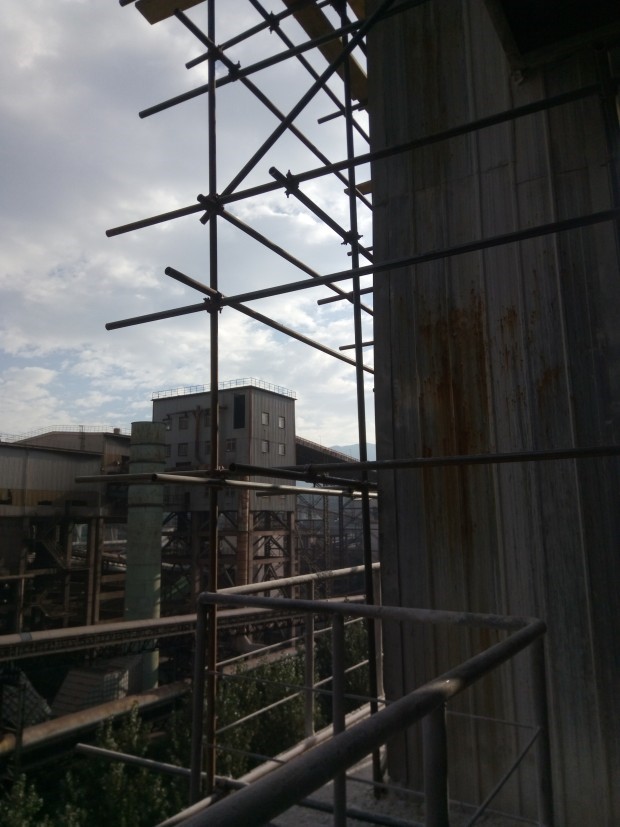 1015日,準備對A1斗提箱體進(jìn)行焊接施工時(shí),新的問(wèn)題又出現了,40多米高的斗提箱體用移動(dòng)式腳手架已經(jīng)無(wú)法滿(mǎn)足施工安全要求,經(jīng)過(guò)現場(chǎng)實(shí)際勘察只能采取搭設鋼管架子作為檢修平臺,但是檢修班沒(méi)有一個(gè)專(zhuān)業(yè)架子工,如果外包給施工單位費用高昂,經(jīng)研究決定自己買(mǎi)鋼管自己搭架,同時(shí)派人到土建建筑工地學(xué)習搭架技術(shù)。1021日檢修班安全地在30米高空搭鋼管架,經(jīng)現場(chǎng)檢測具備人員施工條件后,順利完成了A1斗提的焊接工作。