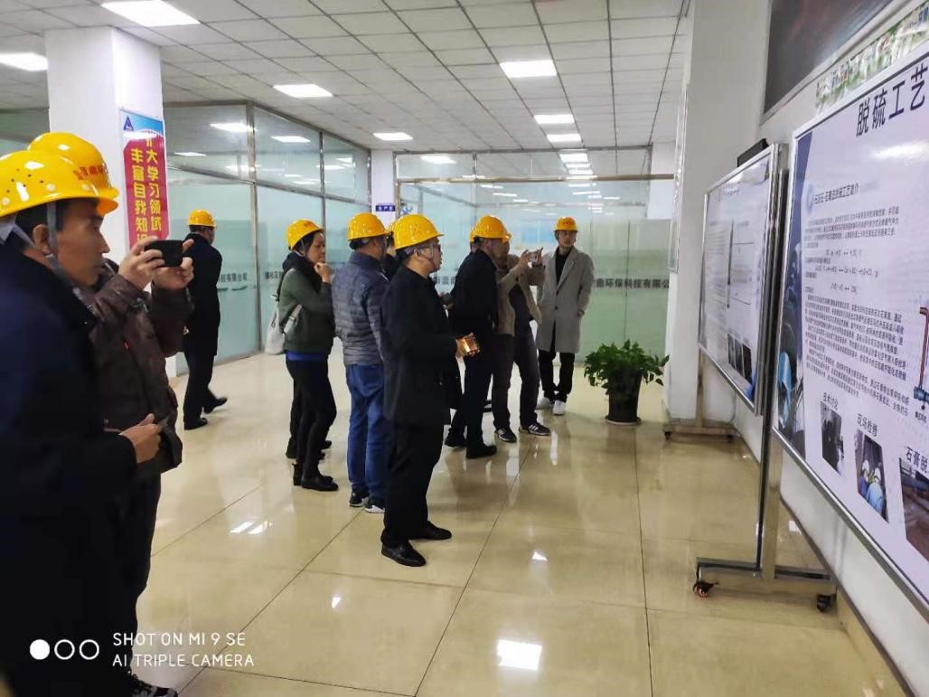 下午13:20左右石膏協(xié)會(huì )相關(guān)人員在藍鼎環(huán)保董事長(cháng)李自樹(shù)、副董事長(cháng)李昆的陪同下到脫硫運行現場(chǎng)參觀(guān),主要了解脫硫系統生成石膏相關(guān)工藝流程。