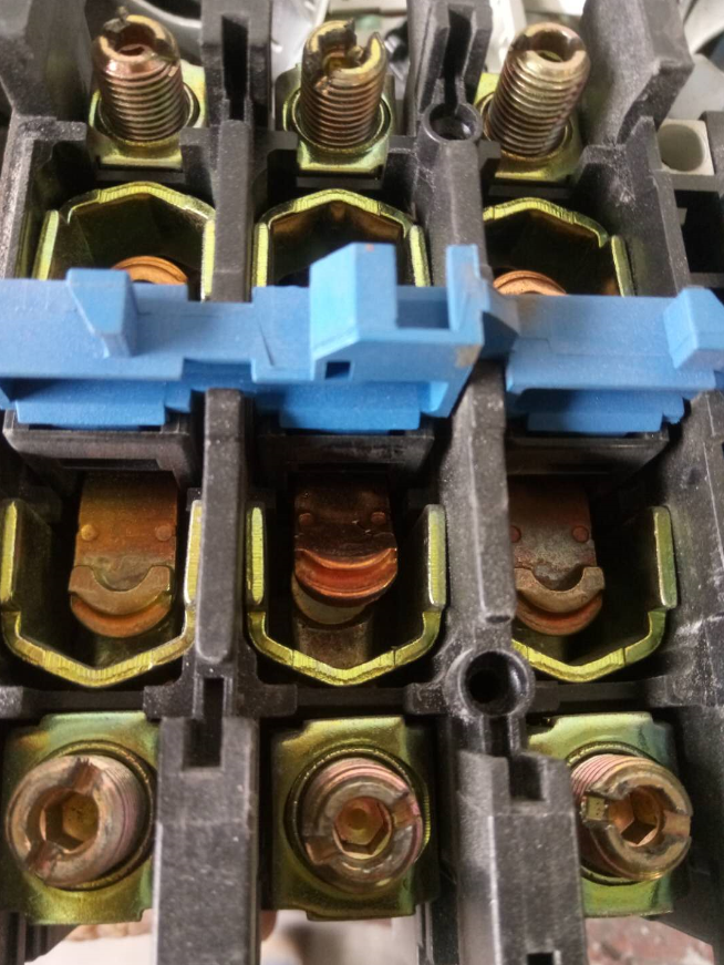 電儀組結合現場(chǎng)檢修實(shí)際情況,發(fā)現故障率最高的電氣備件交流接觸器損毀嚴重,通過(guò)對48臺交流接觸器的解體,發(fā)現有的是觸頭燒壞、有的是線(xiàn)圈燒壞、有的是彈簧斷裂。通過(guò)打磨觸頭、鐵芯,兩兩組合,最后通電試驗,滿(mǎn)足試驗要求,成功修復20臺交流接觸器。