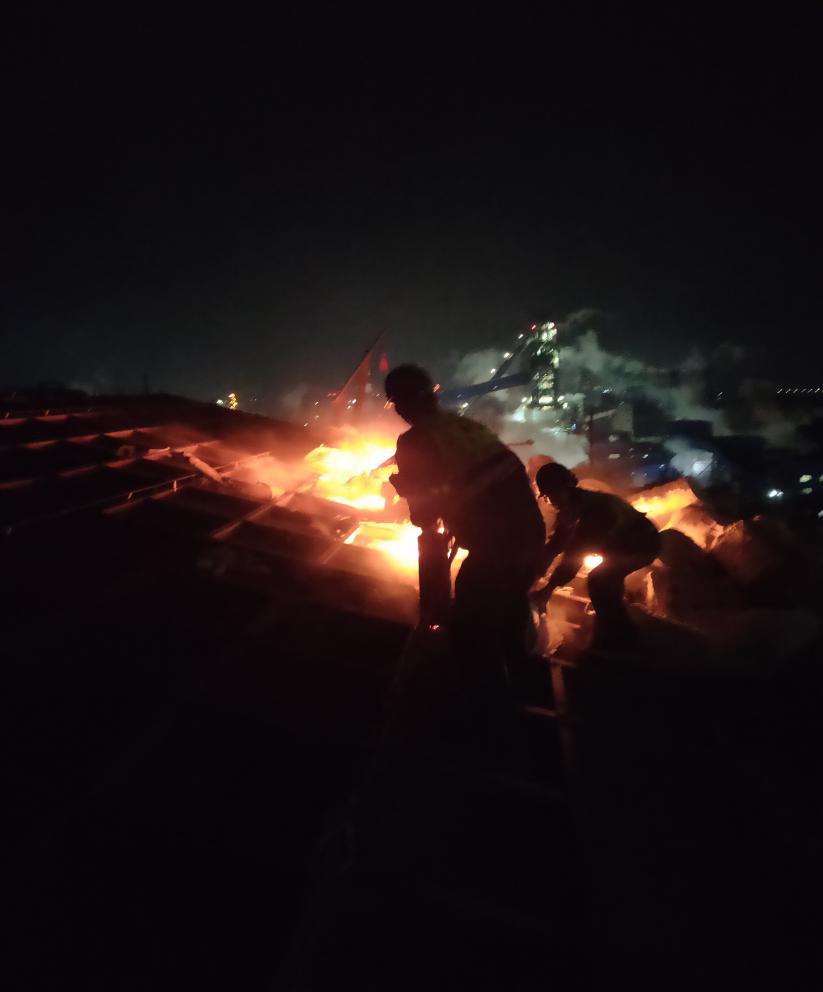 當班長(cháng)立即通知生產(chǎn)部部長(cháng)并組織人員進(jìn)行滅火,265現場(chǎng)崗位人員雷鵬飛先行登上脫硝頂部進(jìn)行滅火。22:02生產(chǎn)部部長(cháng)黃安軍、副部長(cháng)游德元、楊平到達現場(chǎng)組織滅火,22:15火勢得到控制,明火撲滅。為避免再次著(zhù)火,現場(chǎng)人員將脫硝頂部的保溫棉和編織袋徹底進(jìn)行清理。