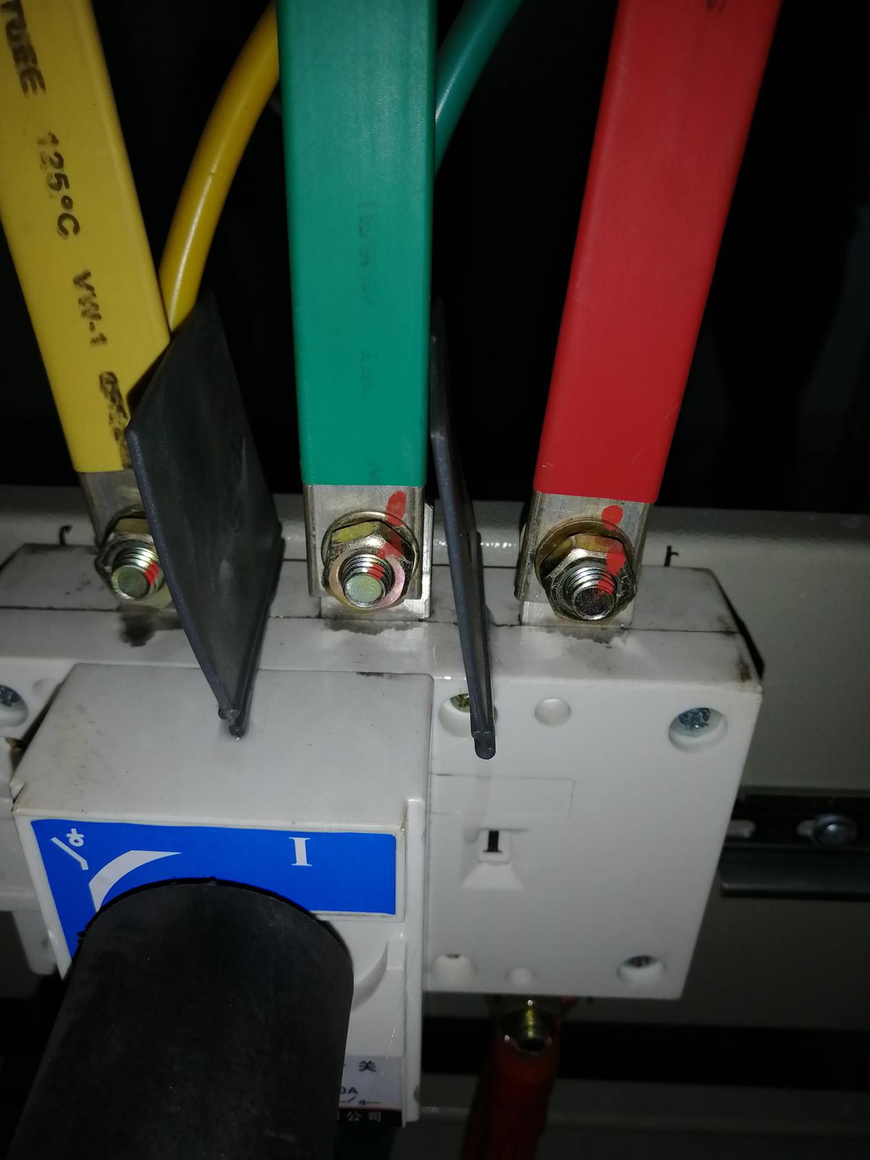 西藍鼎電儀人員在對脫硫脫硝系統低壓電氣設備檢修時(shí),發(fā)現隔離開(kāi)關(guān)表面積灰嚴重,因積灰具有較強的導電性,存在安全風(fēng)險。現用隔離開(kāi)關(guān)為普通型,不具備防塵功能,且在檢修過(guò)程中發(fā)現施工單位私自將原本設計的內循環(huán)排風(fēng)系統改為外循環(huán)排風(fēng)系統,造成了大量的粉塵進(jìn)入配電室。面對積灰問(wèn)題,檢修班原計劃將18臺隔離開(kāi)關(guān)全部更換成防塵型隔離開(kāi)關(guān),但經(jīng)測算發(fā)現成本偏高,且檢修周期長(cháng)。面對難題檢修班經(jīng)過(guò)討論后決定在兩相電源之間粘一片膠皮擋板,防止因積灰造成相間短路情況的發(fā)生。