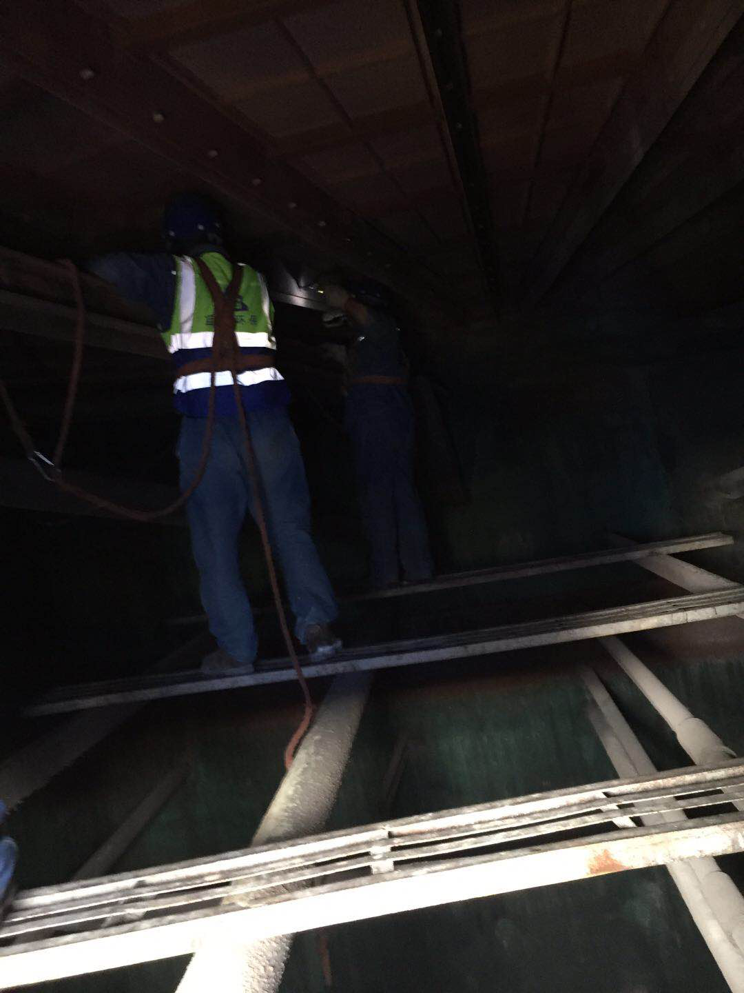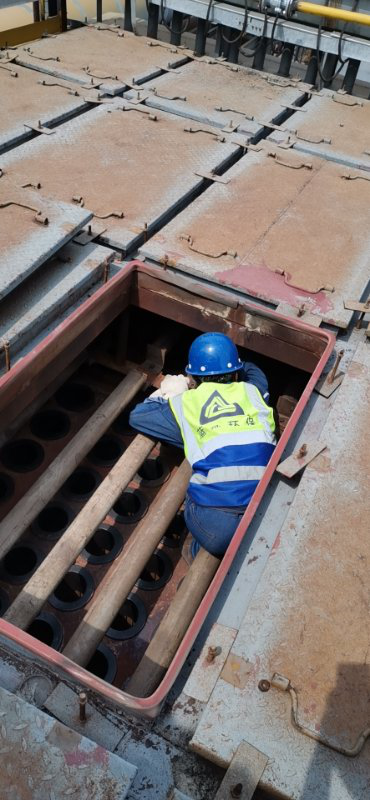 檢修人員清理熱風(fēng)爐內部積物緊固GGH底部密封擋板