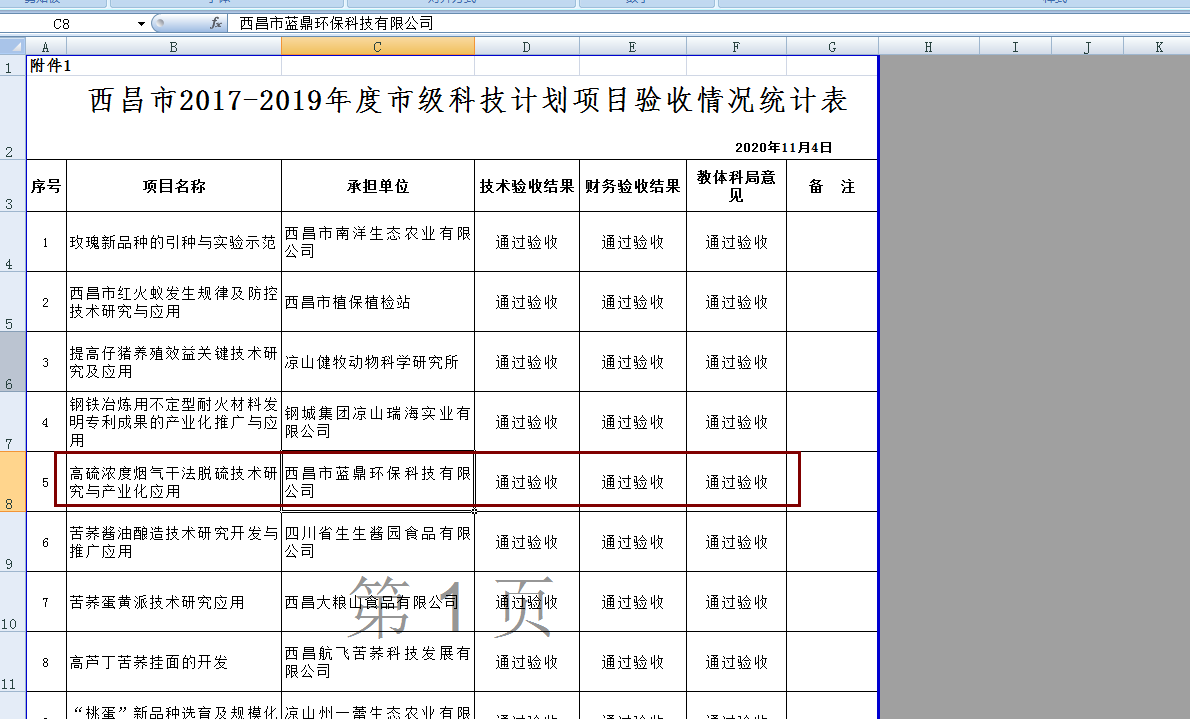 11月17日西昌市教育體育和科學(xué)技術(shù)局在西昌教育信息業(yè)務(wù)系統網(wǎng)公布了西昌市2017-2019年度科技計劃項目驗收情況,本次有23項科技計劃項目通過(guò)驗收,其中由西昌市藍鼎環(huán)?萍加邢薰境袚氖屑壙萍加媱濏椖俊陡吡驖舛葻煔飧煞摿蚣夹g(shù)研究與產(chǎn)業(yè)化應用》在列。