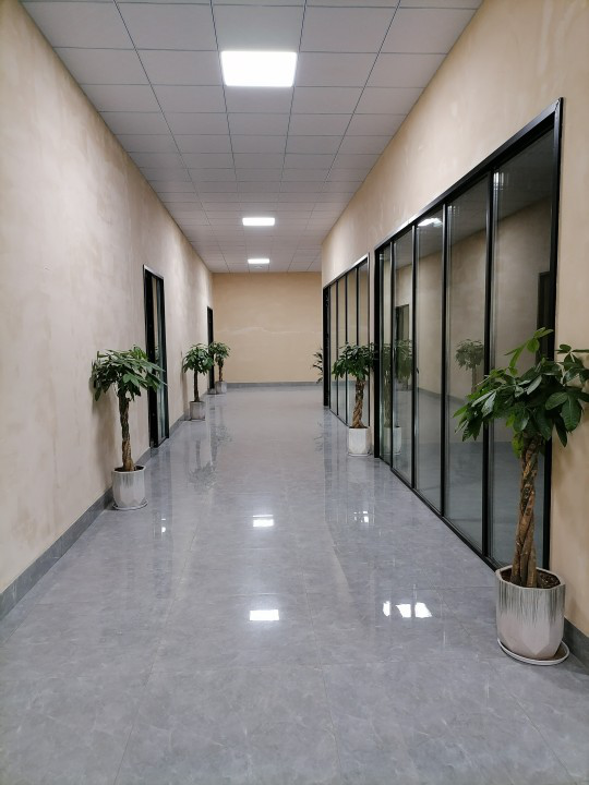 新辦公樓采用西昌藍花楹建材生產(chǎn)的石膏砌塊作為隔墻,藍花楹輕質(zhì)抹灰石膏作為墻面裝飾材料,安全環(huán)保無(wú)甲醛。裝修采用現代風(fēng)格,搭配綠色植物裝飾。