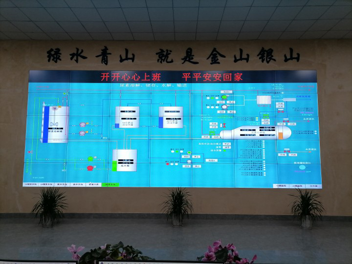 新中控室35臺55寸京東方顯示器拼接成超大顯示屏,生產(chǎn)運行情況盡收眼底。透明的玻璃推拉門(mén),實(shí)現了天然采光的功能,寬敞明亮。樓道照明采用人體感應控制,實(shí)現了自動(dòng)開(kāi)關(guān)燈。