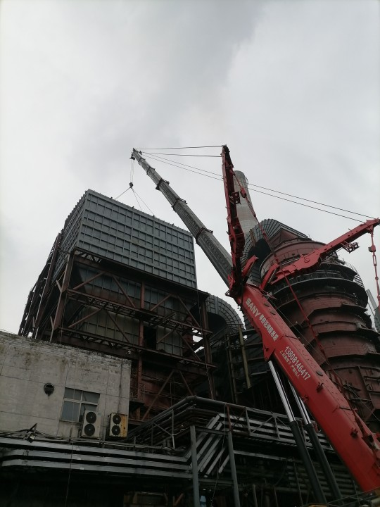 6月8日8點(diǎn)天氣晴朗,風(fēng)力1級,具備良好的施工條件,上午8點(diǎn)10分500噸的吊車(chē)準備就緒,吊裝人員系好了吊繩,技術(shù)員確定吊裝位置,安全員仔細檢查吊繩是否完好,各項工序準備就緒,指吊員準確指揮吊車(chē)起動(dòng),下午5點(diǎn)30分30噸重的脫硝塔鋼結構吊裝到位,穩穩的焊接在脫硝塔頂部。