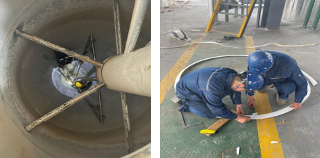 檢修現場(chǎng)更換稠厚器攪拌、硝一效主體墊子