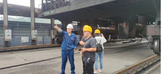第二組在生產(chǎn)部副部長(cháng)王建勇的帶領(lǐng)下來(lái)到了煉焦的生產(chǎn)現場(chǎng)推焦機旁,針對現場(chǎng)重主要設備的名稱(chēng)及作用進(jìn)行行詳細了解。