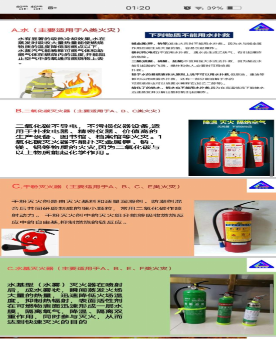 消防知識則從了解燃燒的基本條件,到滅火的幾種方法:冷卻法、隔離法、窒息法、抑制法,滅火器材的使用,放置地點(diǎn),詳細的講述了應對火災的“四會(huì )”:會(huì )報警、會(huì )使用消防器材、會(huì )組織人員疏散逃生、會(huì )撲救初期火災。四懂:懂本崗位的火災危險性、懂預防火災的措施、懂滅火方法、懂逃生方法。