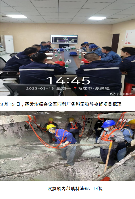 威遠藍鼎提釩廢水處理和蒸發(fā)濃縮項目,自去年10月份停機大修至今已有近半年時(shí)間。運行過(guò)程中水處理吹氨塔填料堵塞漏蒸汽,蒸發(fā)濃縮各單元設備故障明顯增加,影響系統運行。威遠藍鼎在釩廠(chǎng)回轉窯大修期間,提前消減廢水庫存至3000m3以下,避免廢水外送高爐。3月13日威遠藍鼎副總經(jīng)理黃安軍、副部長(cháng)楊平、宋雨鵬在蒸發(fā)濃縮會(huì )議室組織釩廠(chǎng)各科室開(kāi)展檢修協(xié)調會(huì ),告知釩廠(chǎng)相關(guān)領(lǐng)導本次檢修項目的重點(diǎn)、難點(diǎn)、風(fēng)險點(diǎn),為水處理爭取充足的檢修時(shí)間。
