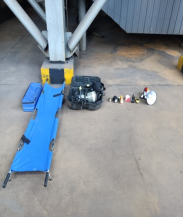 演練器材準備救援隊員穿戴救援器材受傷人員轉移至安全場(chǎng)所進(jìn)行人工呼吸。