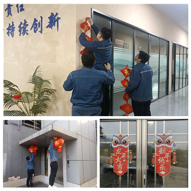 隨著(zhù)春節的來(lái)臨,攀藍鼎、西昌藍鼎、威遠藍鼎和威遠中皓的同事們?yōu)檗k公室掛上了充滿(mǎn)喜慶氛圍的新春裝飾,共同迎接這個(gè)象征著(zhù)團圓和希望的佳節。紅彤彤的燈籠、吉祥的窗花、寓意美好的中國結不僅美化了工作環(huán)境,更裝點(diǎn)了大家的心情,營(yíng)造了濃濃的節日氛圍。