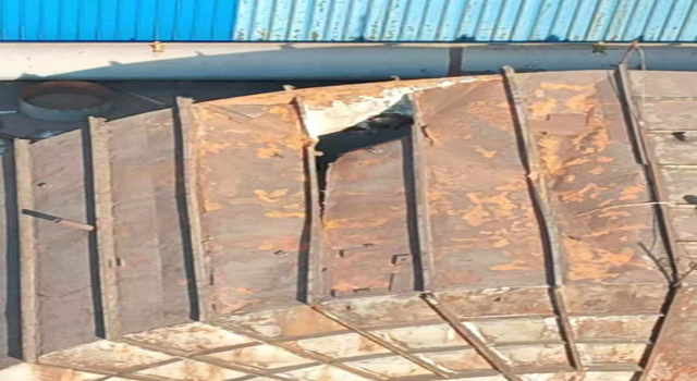 8月27日,檢修員在巡檢時(shí)發(fā)現并上報了燒結二號脫硫增壓風(fēng)機進(jìn)口煙道頂部約27㎥鋼板出現塌陷,威遠藍鼎生產(chǎn)部高度重視,立即將風(fēng)險隱患上報燒結廠(chǎng)部領(lǐng)導,協(xié)商時(shí)間處理。當天廠(chǎng)部協(xié)商停機4小時(shí)對脫落部位進(jìn)行臨時(shí)加固處理。8月28日,廠(chǎng)部利用高溫限電停機11小時(shí),對二號燒結進(jìn)口煙道頂部脫落位置進(jìn)行全面檢修。