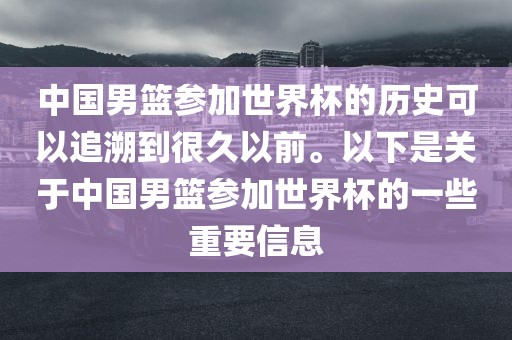 中国男篮参加世界杯的历史可以追溯到很久以前。以下是关于中国男篮参加世界杯的一些重要信息
